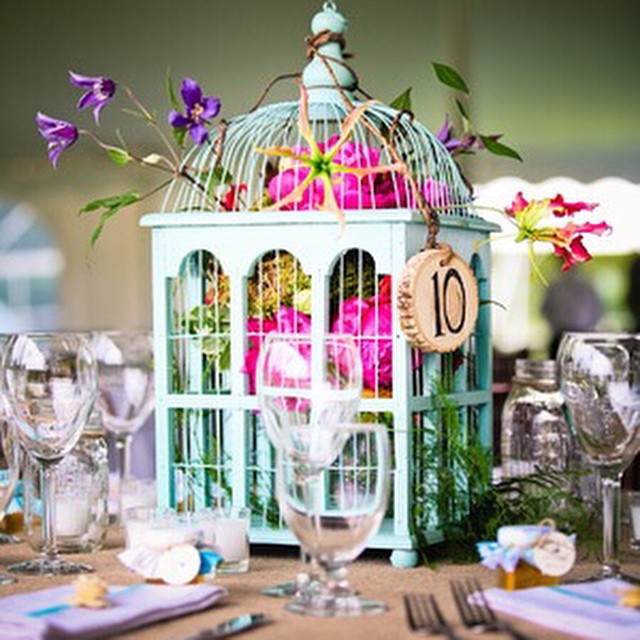 This colorful birdcage adds a unique touch of color and artistic elegance. #partyideas #partystyle #partystyling #partyinspiration #centerpiece #birdcage #eventdesign #beautiful #color #thepartyatelier