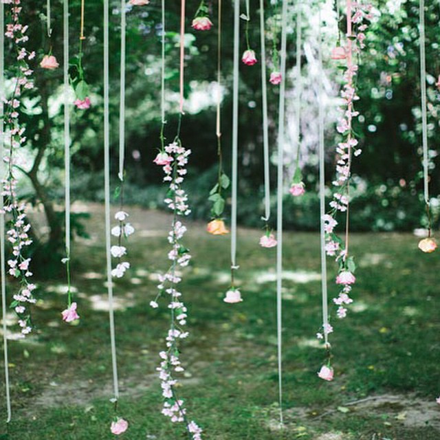 It is not difficult to create an amazing backdrop, take a look at these beautiful flowers hanging from simple ribbon. Image via Green Wedding Shoes #beautiful #beautifulflowers #backdrop #partydecor #partyideas #partystyling #partystyle #gardenparty #hangingdecor #hangingflowers #thepartyatelier