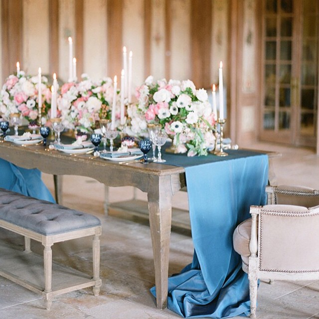 The simplicity and elegance of this rustic table baffles me. This blue runner is beyond gorgeous. Image via @100_layercake #partyideas #partyplanner #partystyling #partyplanning #partystylist #eventdesign #eventplanner #blue #flowers #wedding #weddingideas #weddingdlowers #weddingplanner #weddingphotography #diyparty #diywedding #beautiful #thepartyatelier #weddingtable #tableideas #tablescape #tablesetting #love (at www.thepartyatelier.com)
