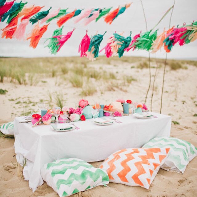 I love everything about this picture. What a perfect beach setting! Image via @greenweddingshoes #partytable #partyideas #diyparty #diywedding #tablescape #tablesetting #summer #beachparty #beach #sun #thepartyatelier #weddingphotography (at www.thepartyatelier.com)