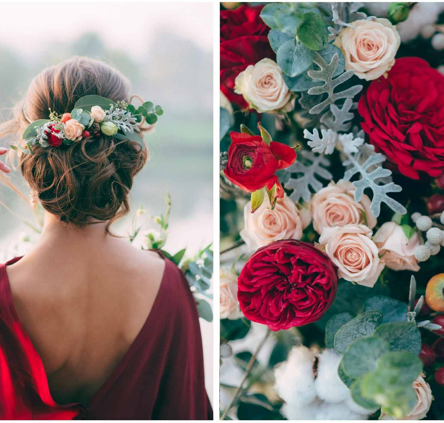 I love this floral hair piece. The deep red and light peach are a perfect combination.